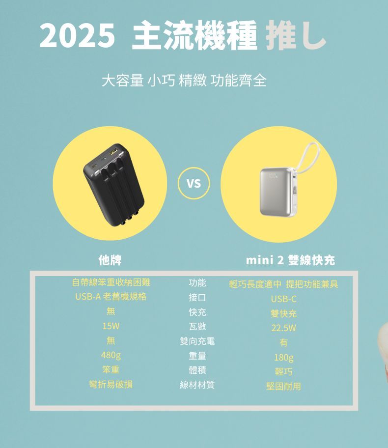 品名 : MINI-2 10000mAh 超輕巧自帶雙線行動電源
