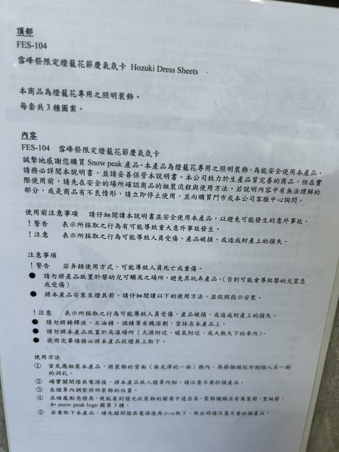 【JIALORNG 嘉隆】SnowPeak 雪峰祭限定 燈籠花 節慶 氣氛卡 FES-104 3入組