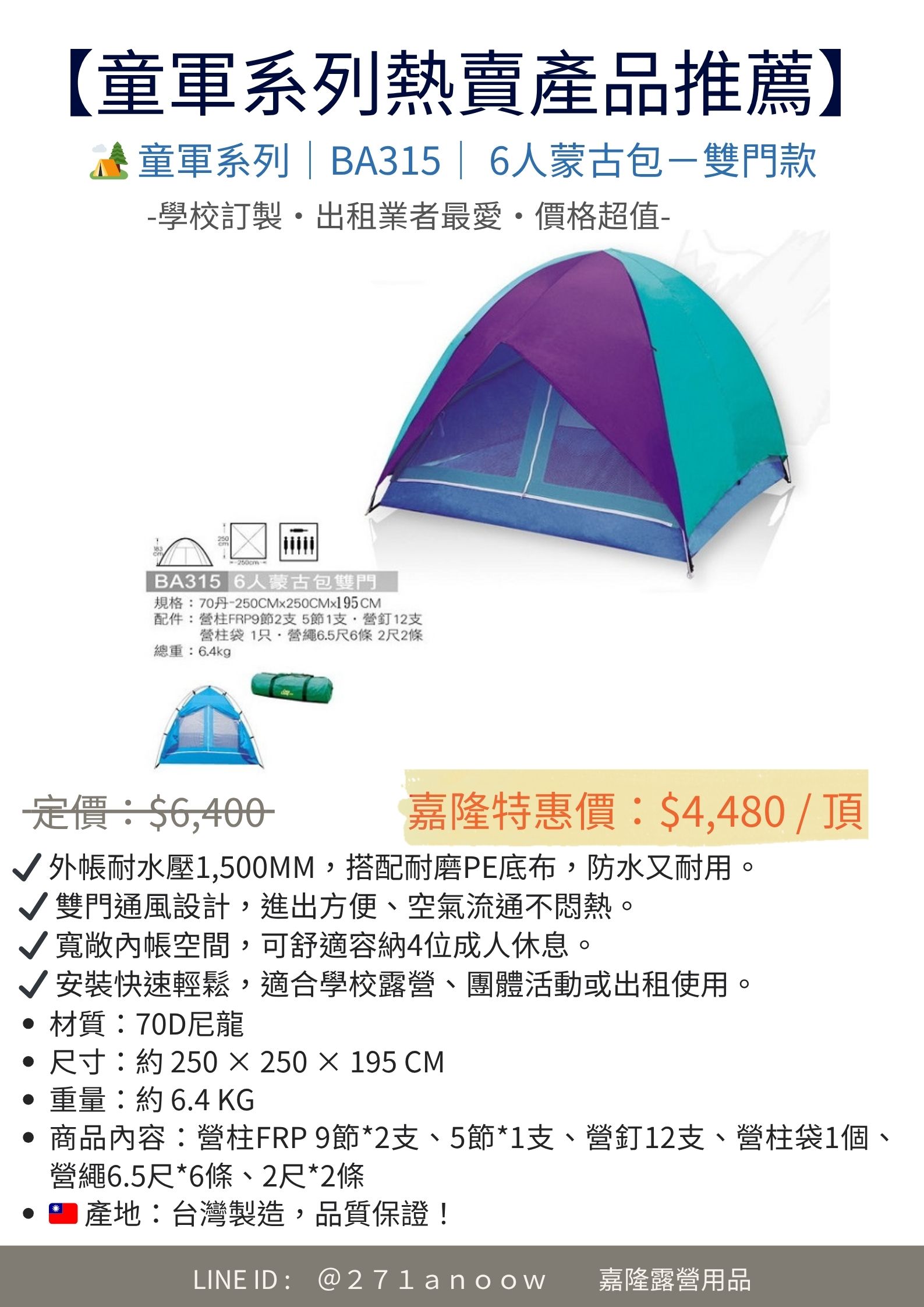 【JIALORNG 嘉隆】CHIA LUNG BA315 嘉隆 童軍系列 6人蒙古包