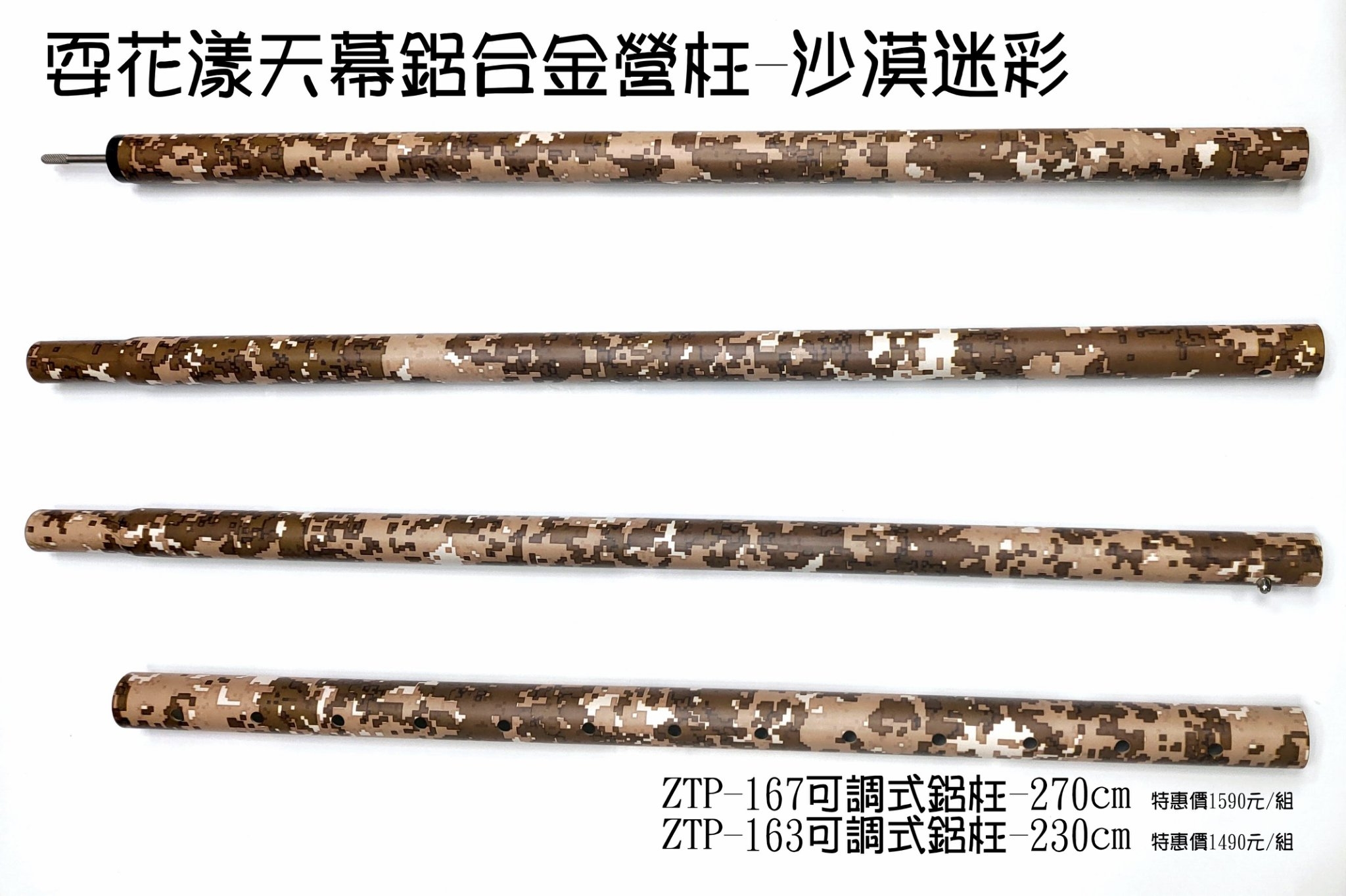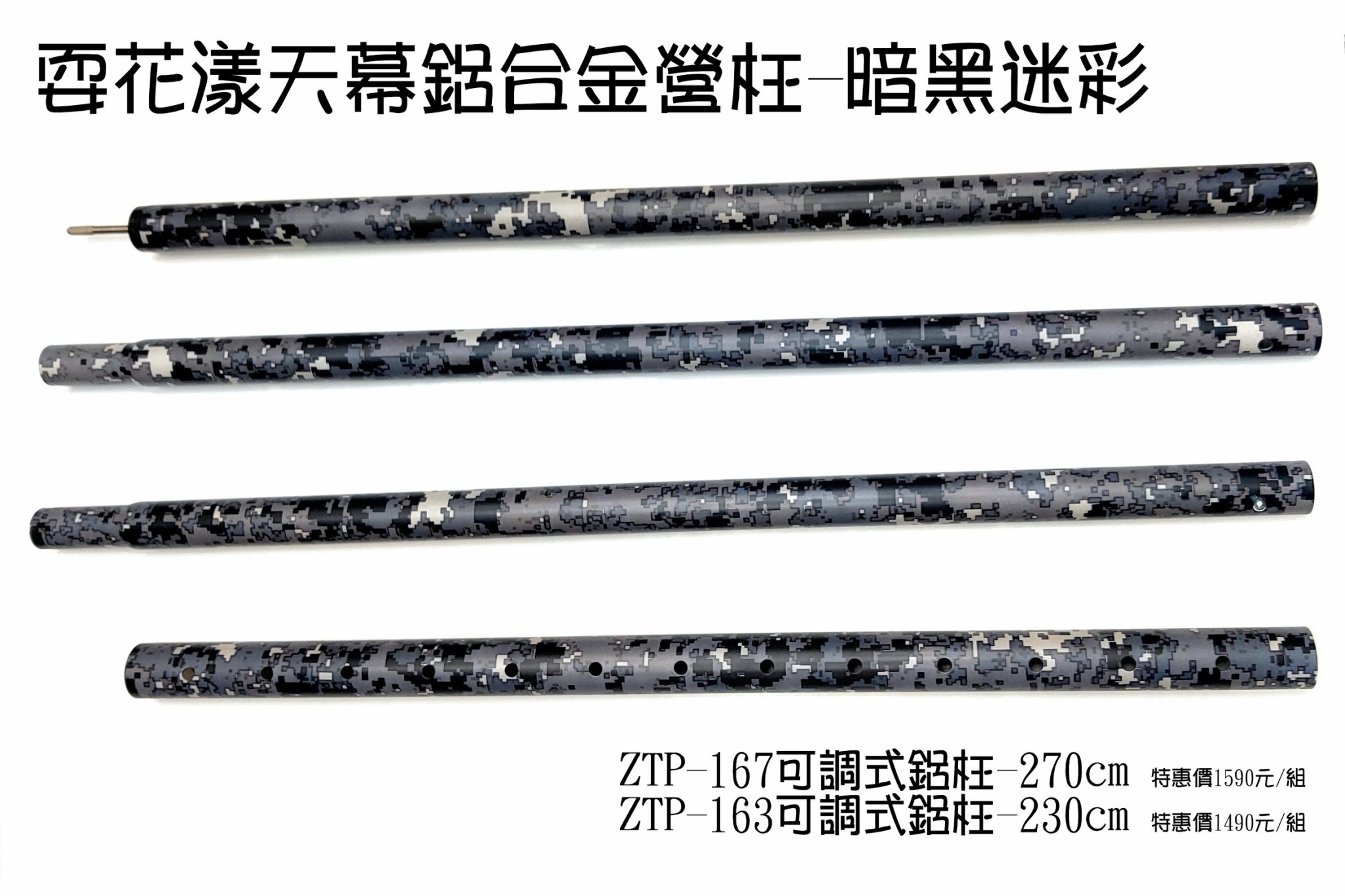 品名 : ZTP-163耍花漾可調式鋁合金營柱-230cm