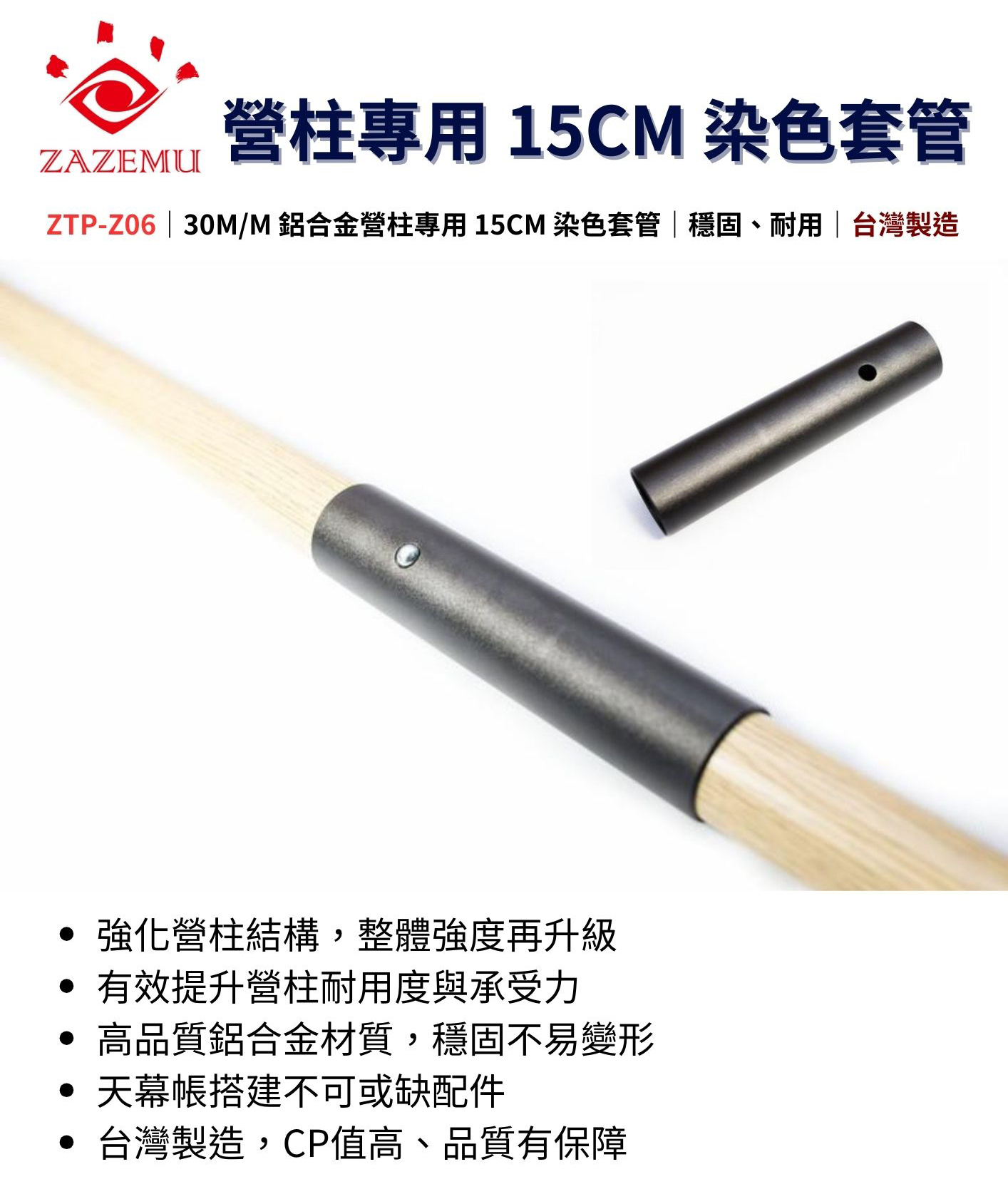 33M/M營柱套管4支/包(黑色)適用嘉隆30M/M鋁合金營柱