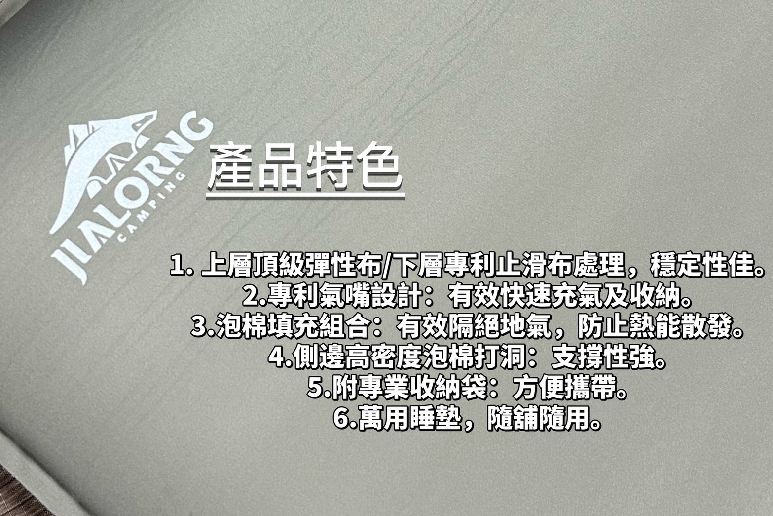 產品內容:8.89cm JIALORNG睡墊一件