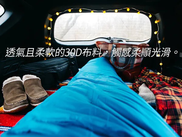 【裡布】使用高品質天鵝絨,消除剛進入睡袋時的冷感,提升睡眠舒適體驗。