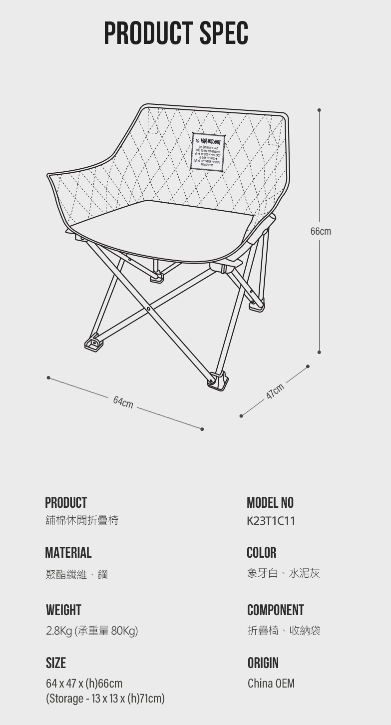‧ 附專用收納袋,方便攜帶,還可以防止椅子弄髒