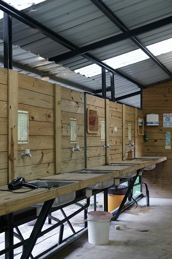 淋浴間10間、蹲式廁所8間、小便斗3處、洗手台41個、另供取水處22處、供電25處(每處有3個插孔)。