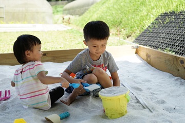 一早起來,其實好像八、九點了 XD。 小朋友們約著又要下去玩沙、玩水、玩球囉!