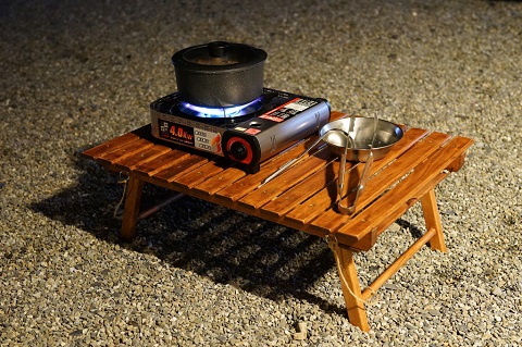 晚餐時,老婆陪著小朋友們,一張櫸木折合桌就是很好用的料理桌,不怕小朋友突然去接近危險的爐火,就這樣安心的料理我們的晚餐。