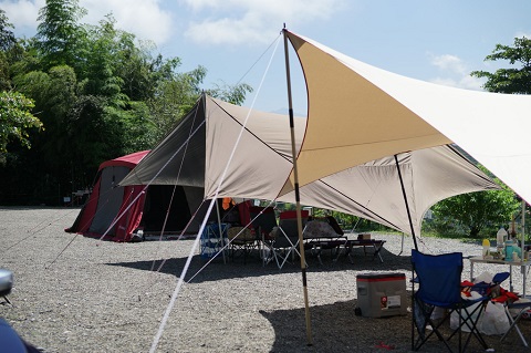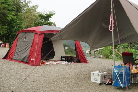 跟朋友約在一起的平日露營,平日露營真的是很大的享受,營地不會有受限制,二頂帳篷包了一層,也許是放暑假的關係,營地其他層當天也有露友在露營。這次露營的地點是碎石的營地,平常就愛撿石頭的阿蜜,開心的不得了,幫我組好營柱後,就跑去跟朋友玩石頭了。