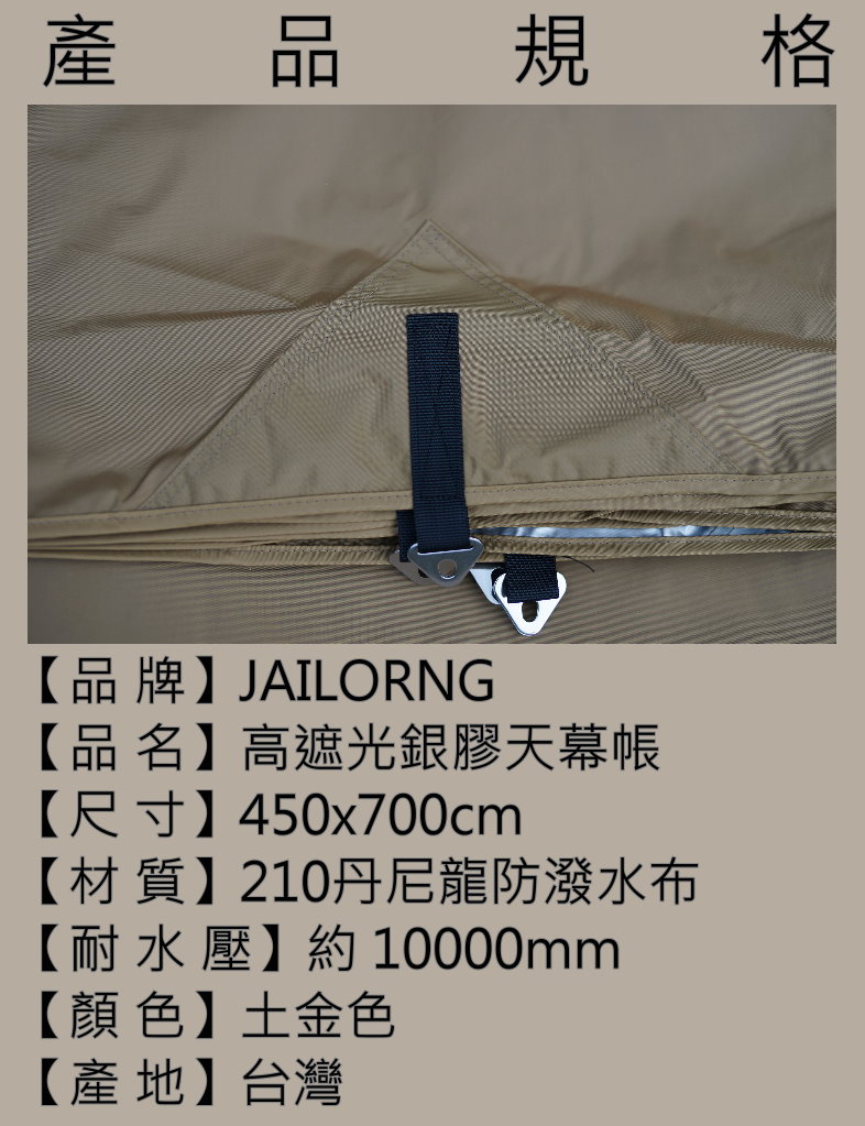 【JIALORNG 嘉隆】JIALORNG JL-731AP4 450CM*700CM 高遮光銀膠天幕帳 (鋁柱黑釘銅槌款含14節套管)