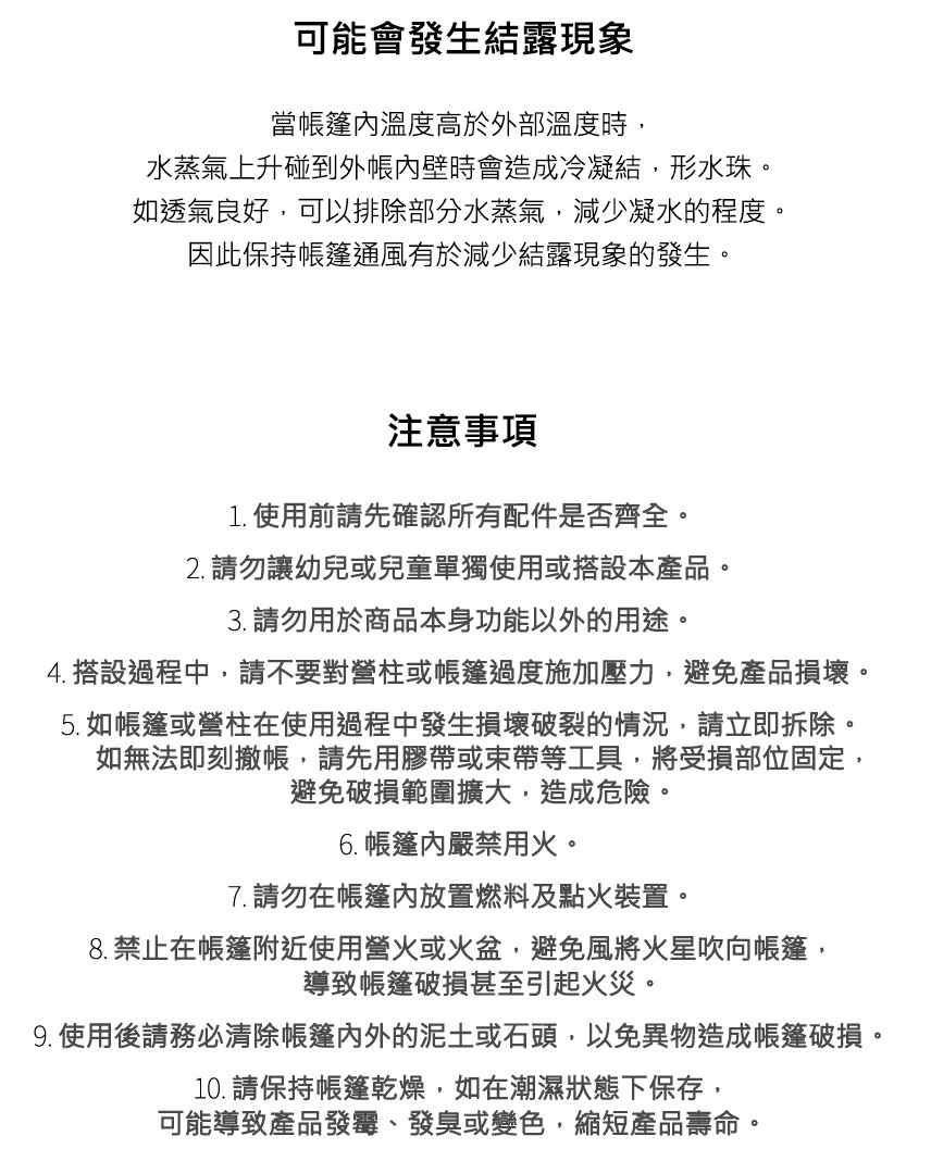材質 : 帳篷布面-P/T 66D 190T PU耐水壓400mm UV
