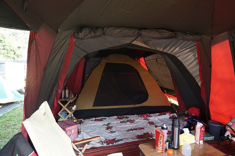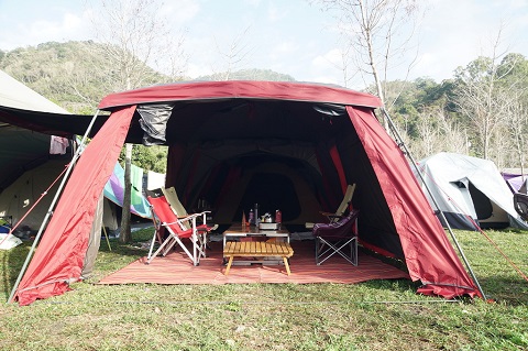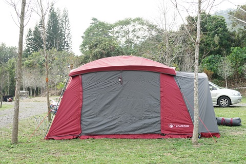 (4)客廳型帳篷=一層遮光防水的頂布層+客廳頂布的遮光防水層等於有兩層的遮光層與防水層,加倍的防水與遮光。