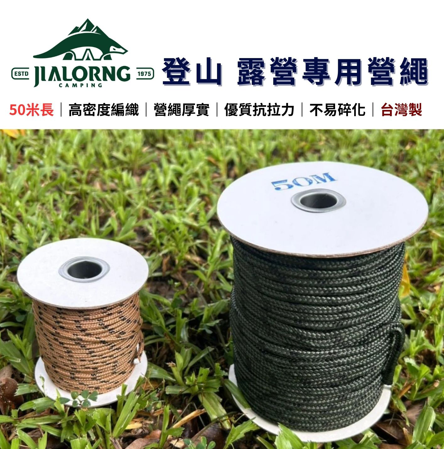 【JIALORNG 嘉隆】JIALORNG 登山 露營專用 營繩 50米長 天幕繩 炊事繩 固定繩 水繩 露營