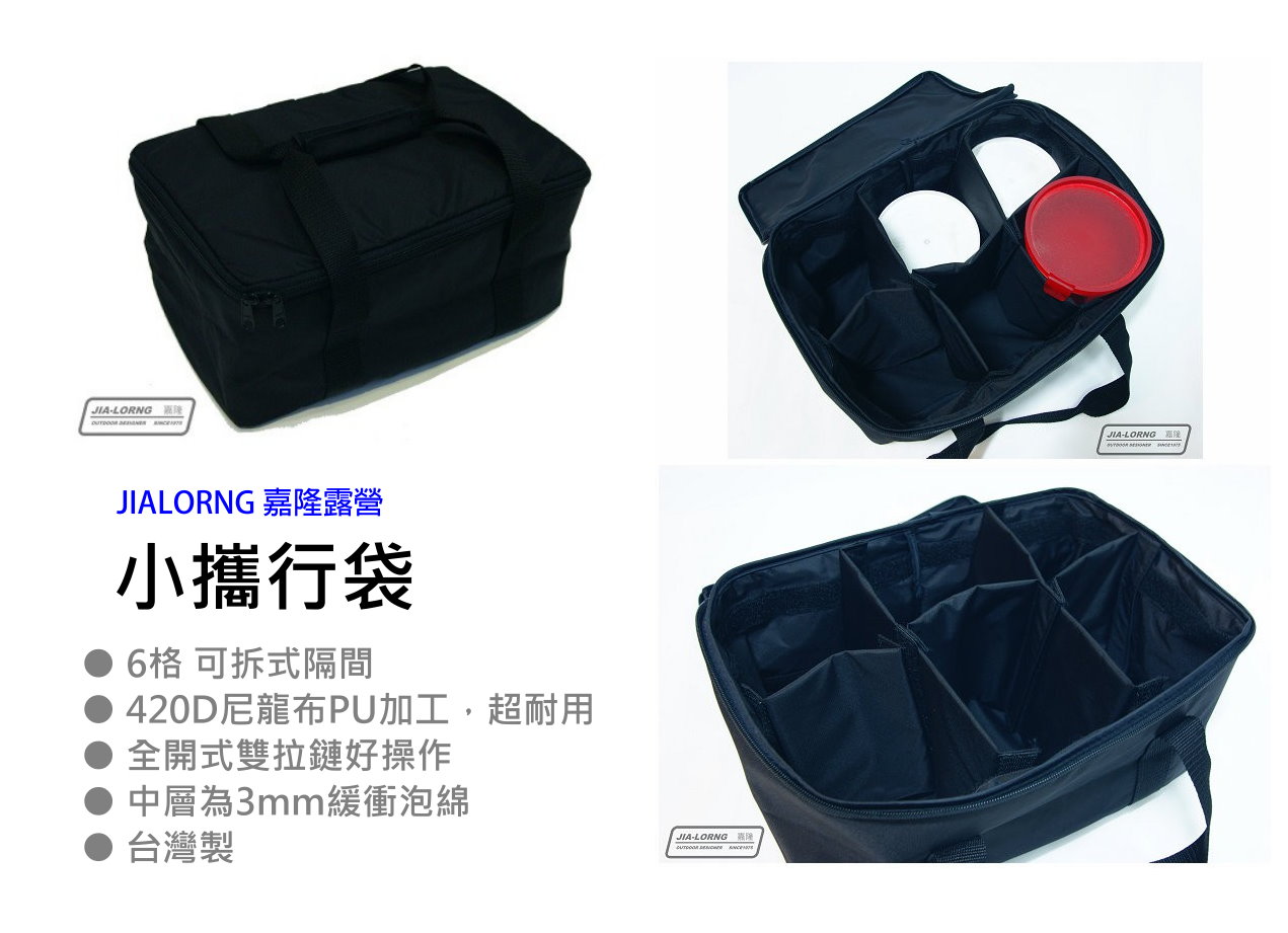 【JIALORNG 嘉隆】嘉隆 BG-026 小攜行袋 (可拆式隔間) 6格 茶具袋 咖啡袋 料理罐袋 萬用袋 露營袋