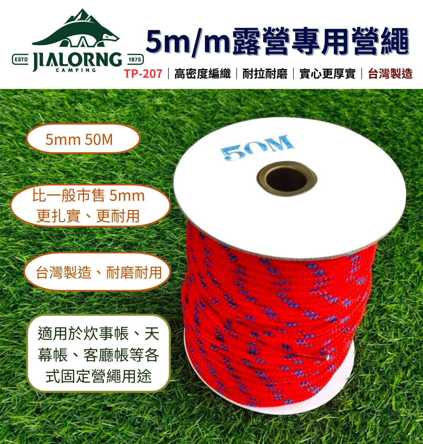 【JIALORNG 嘉隆】 5m/m露營專用 營繩 50米長 天幕繩 炊事繩 固定繩 水繩 露營