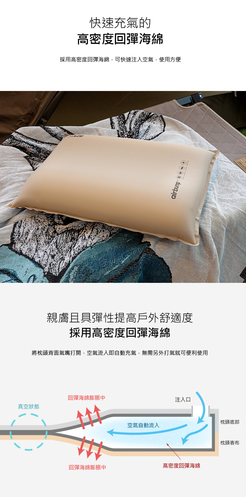 【JIALORNG 嘉隆】KAZMI KZM 輕柔舒眠自動充氣枕