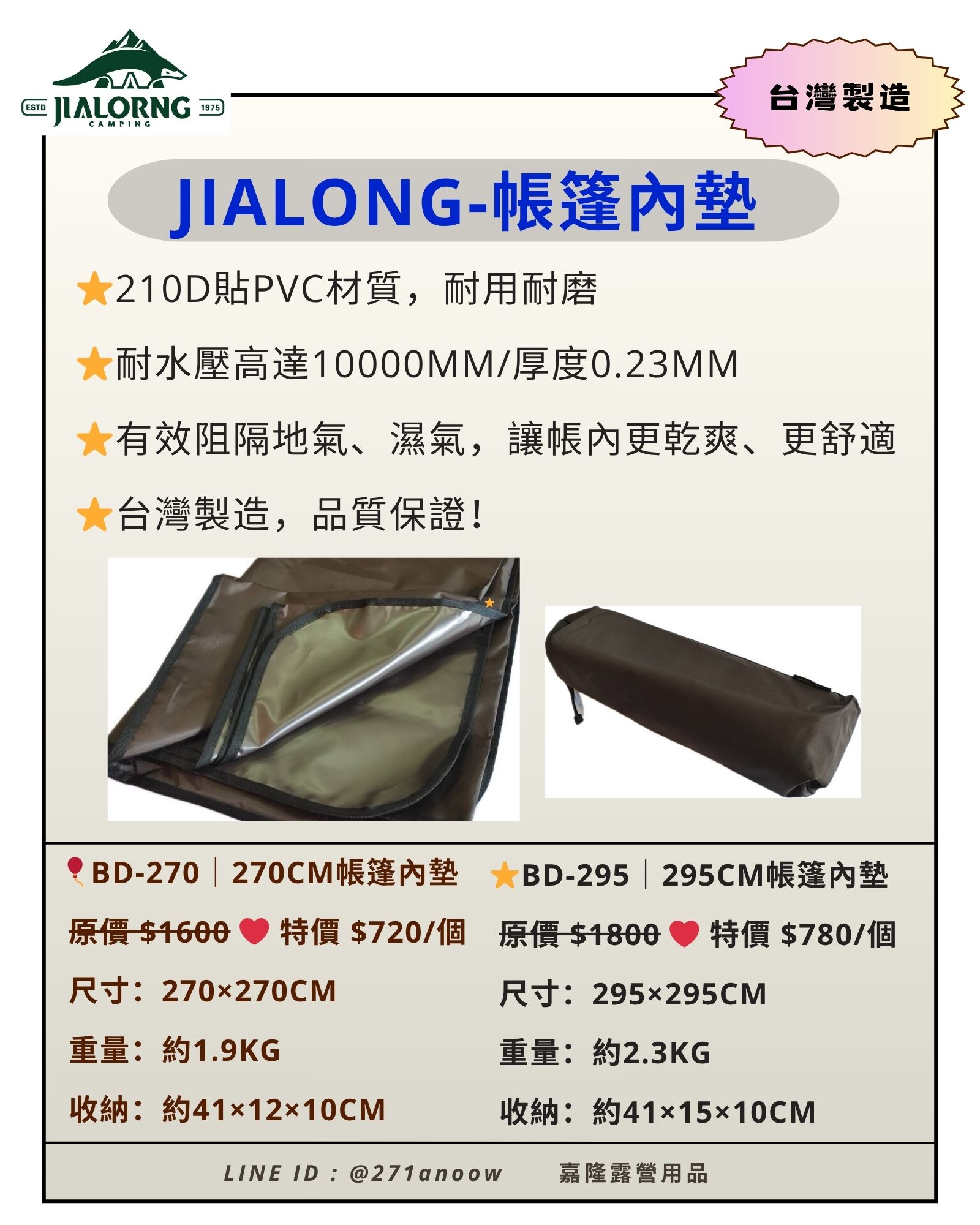 【JIALORNG 嘉隆】台灣製帳篷內墊登場