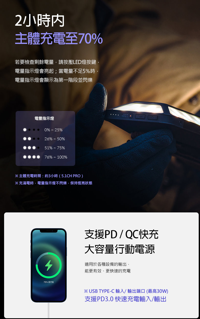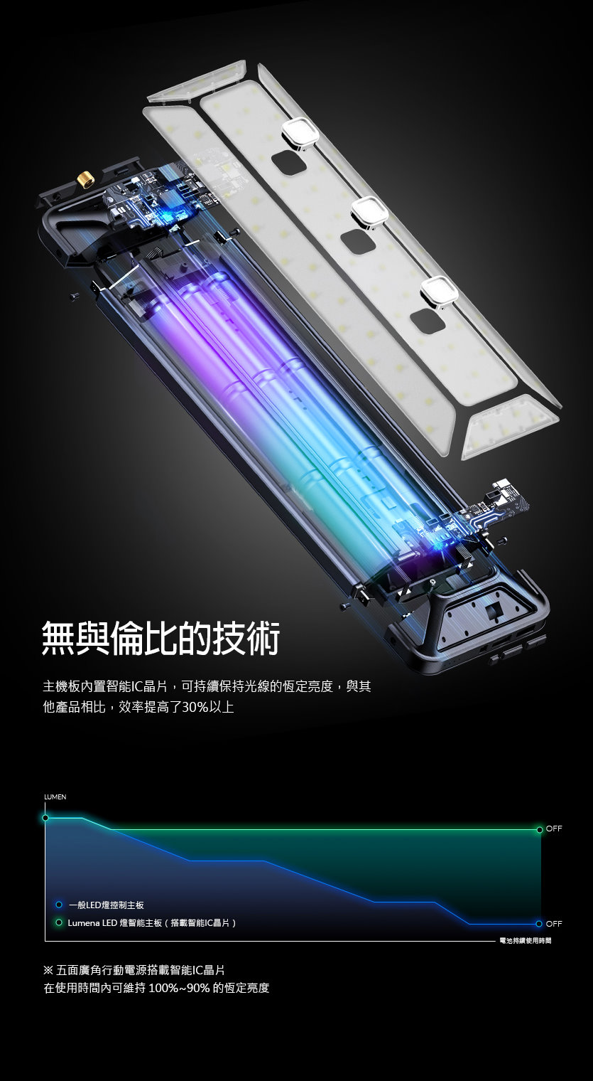 ‧創新的光源設計和最先進的技術,歷代最高規格的行動電源LED燈。