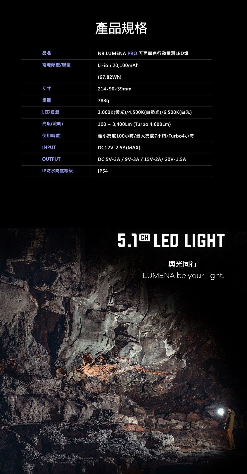 品名 : N9 LUMENA PRO 五面廣角行動電源LED燈