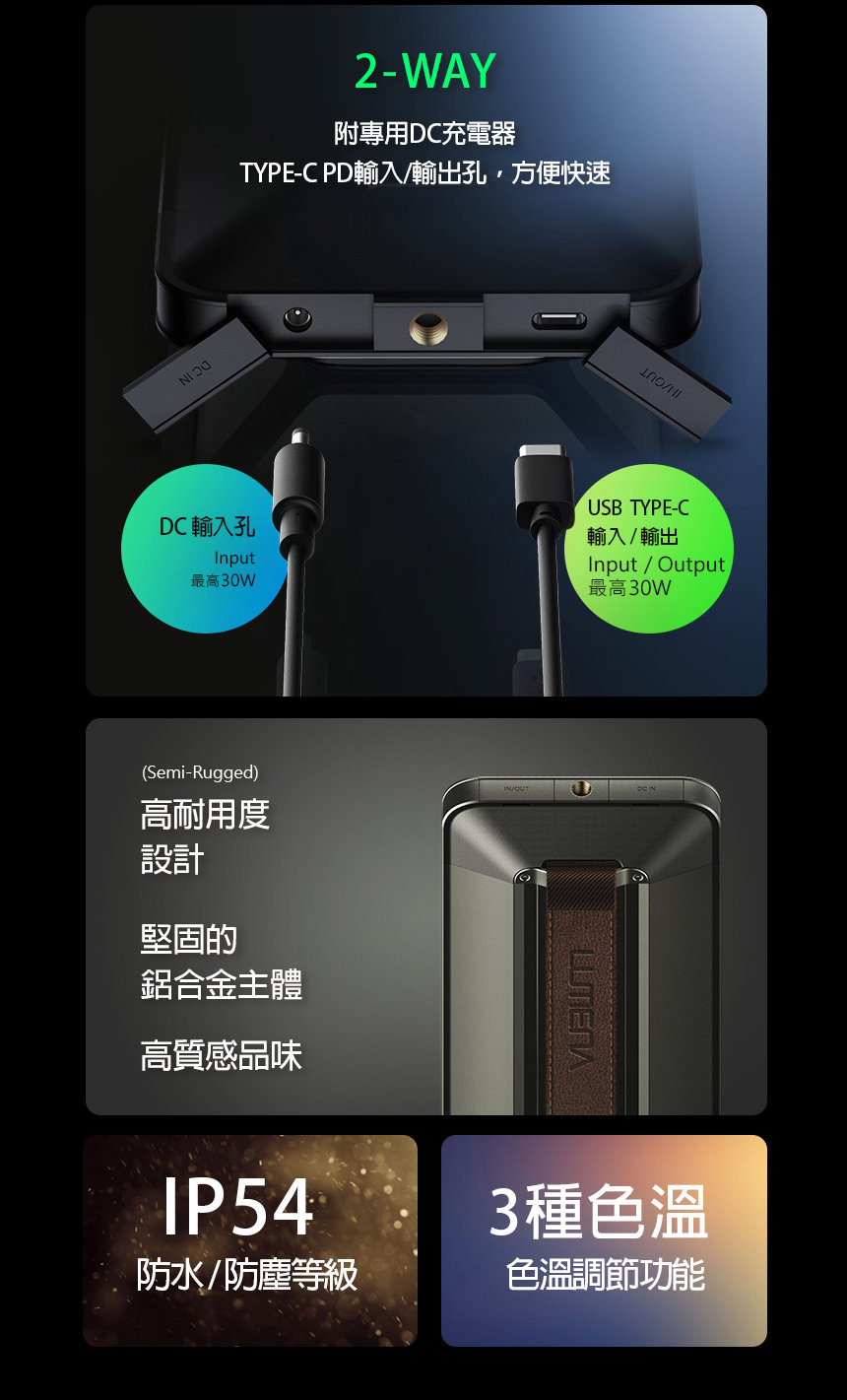 ‧附專用DC充電器,TYPE-C PD 輸入/輸出孔,方便快速。