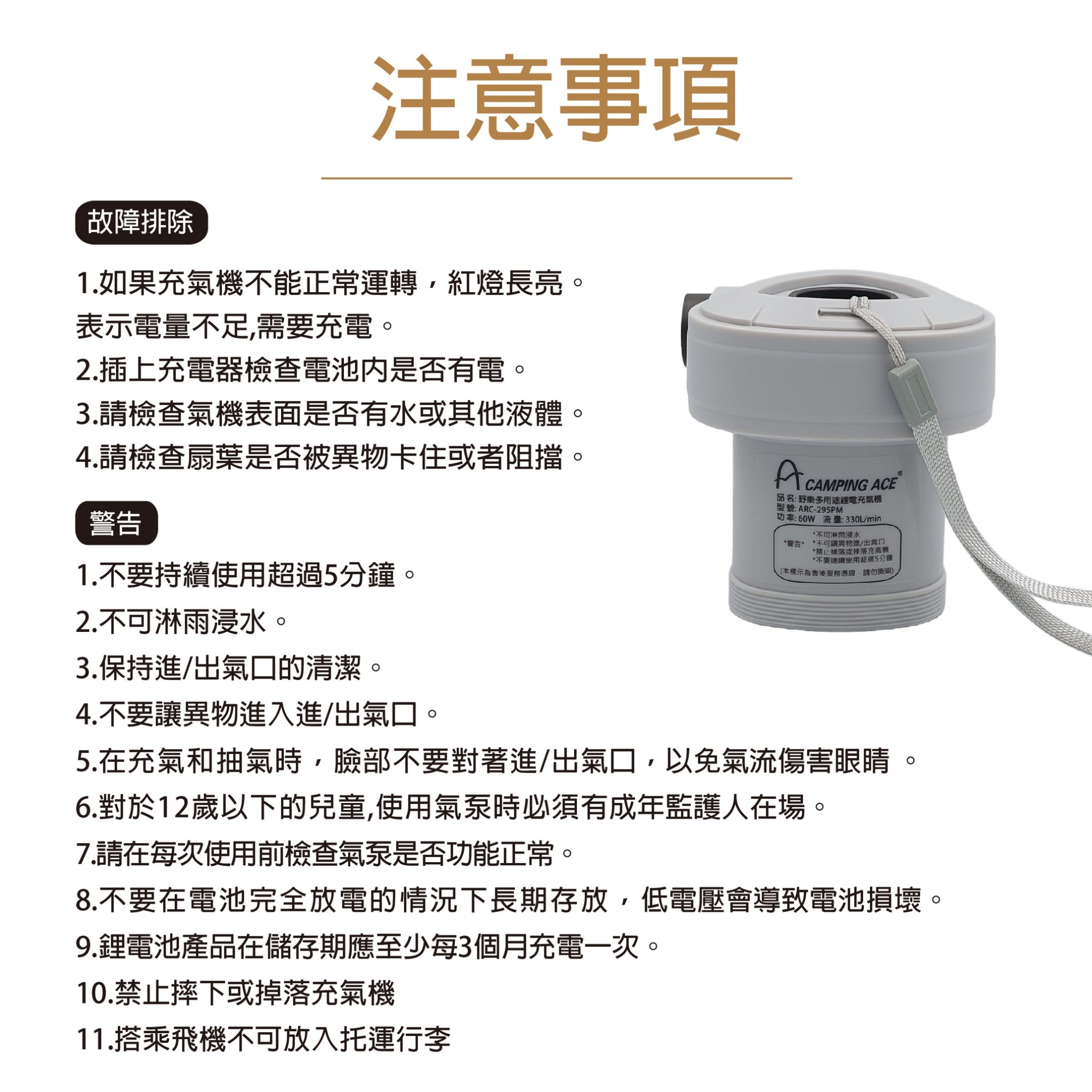【JIALORNG 嘉隆】 Camping Ace 野樂 多用途鋰電充氣機 充氣機 充氣幫浦 車中床 ARC-295PM