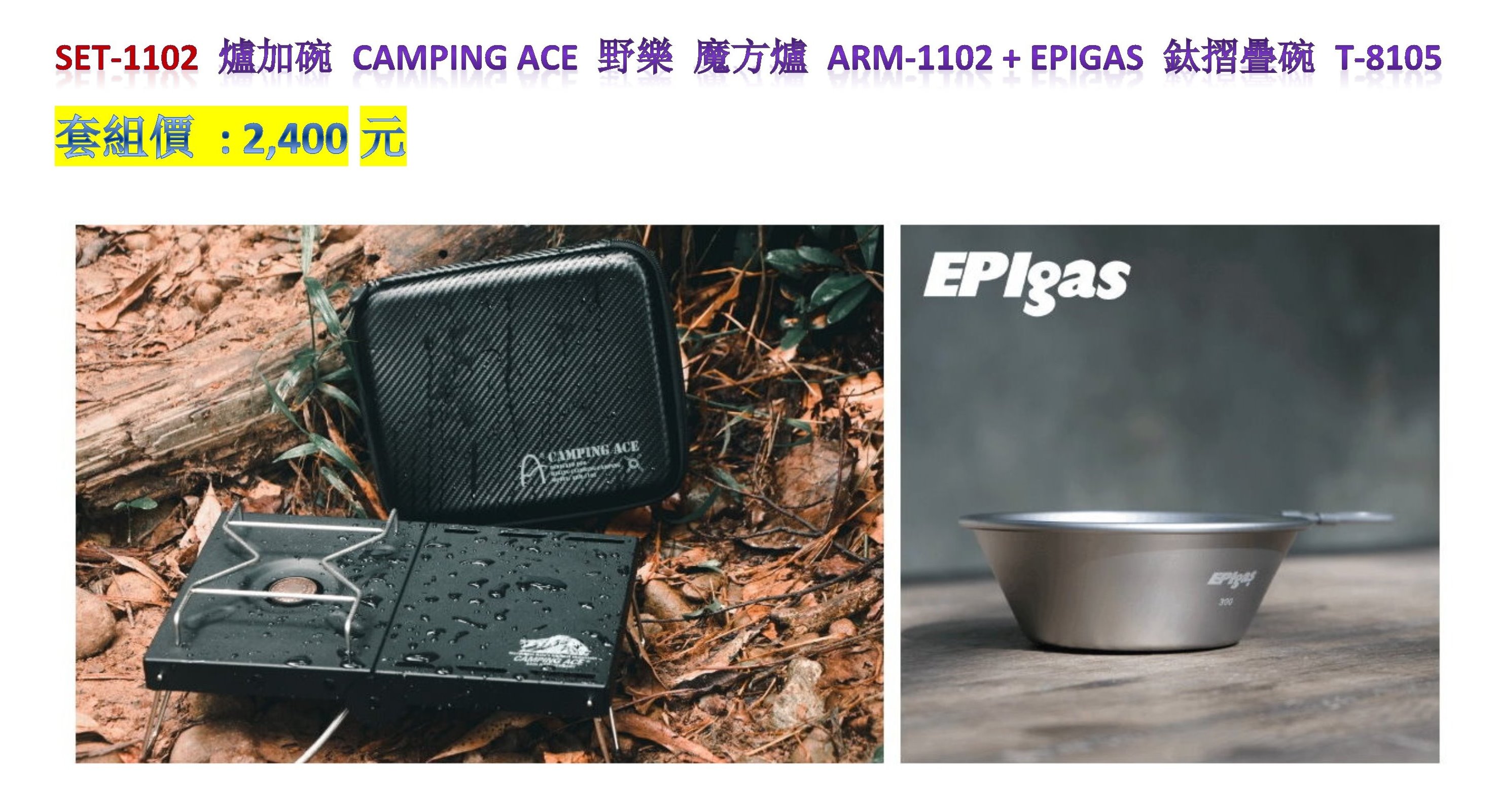 【JIALORNG 嘉隆】SET-1102 爐加碗 CAMPING ACE 野樂 魔方爐 ARM-1102 + EPIgas 鈦摺疊碗 T-8105 鈦碗