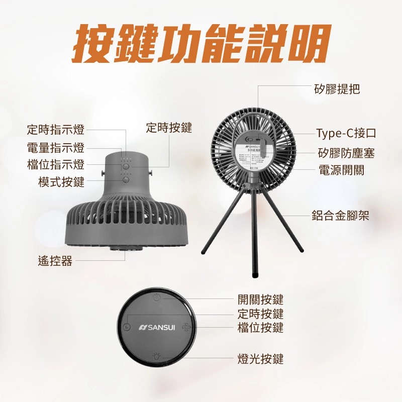 品名 : 7吋戶外充電式露營風扇(贈收納袋)