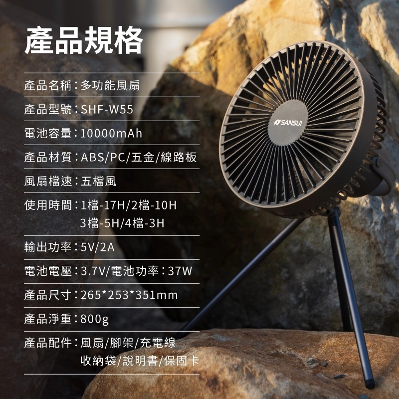 【JIALORNG 嘉隆】 SHF-W55 7吋戶外充電式露營風扇(贈收納袋) 贈 電蚊拍 風扇 露營扇 吊掛扇