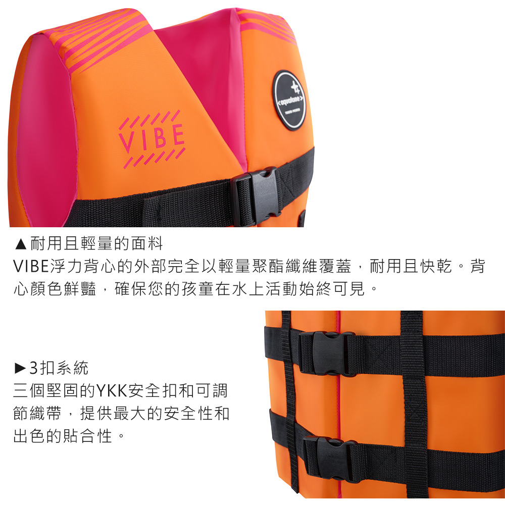 ● 耐用且輕量的面料 : VIBE浮力背心的外部完全以輕量聚酯纖維覆蓋,耐用且快乾。