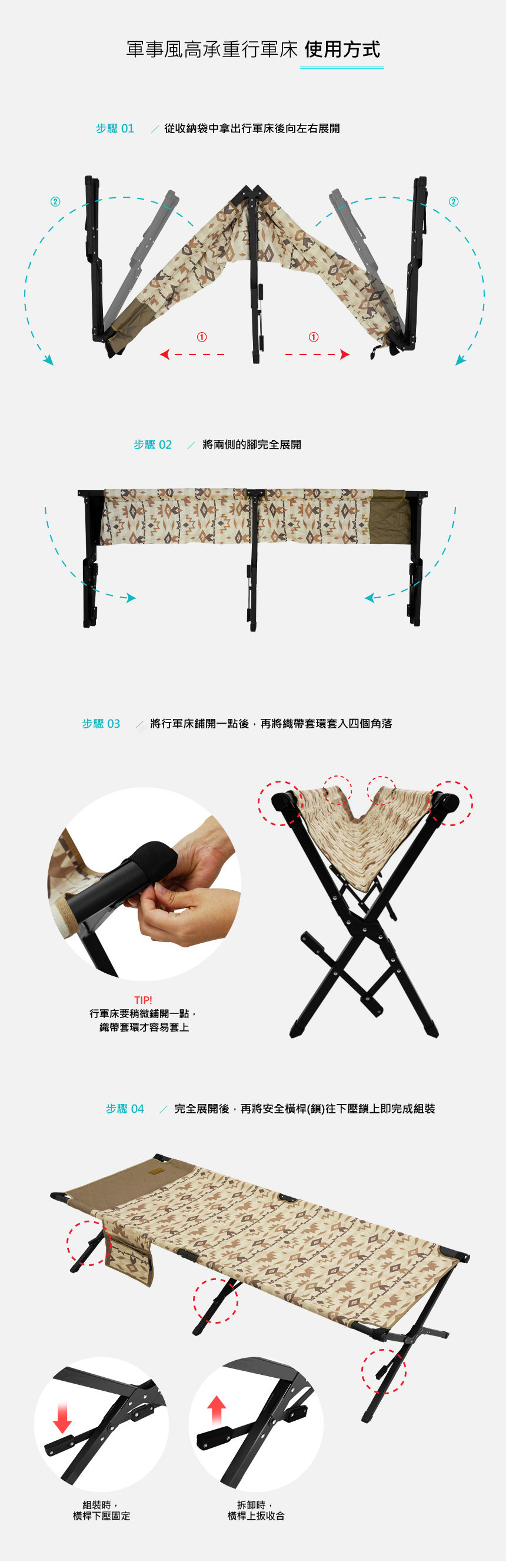 任何人都可以輕鬆安裝的,軍事風高承重行軍床