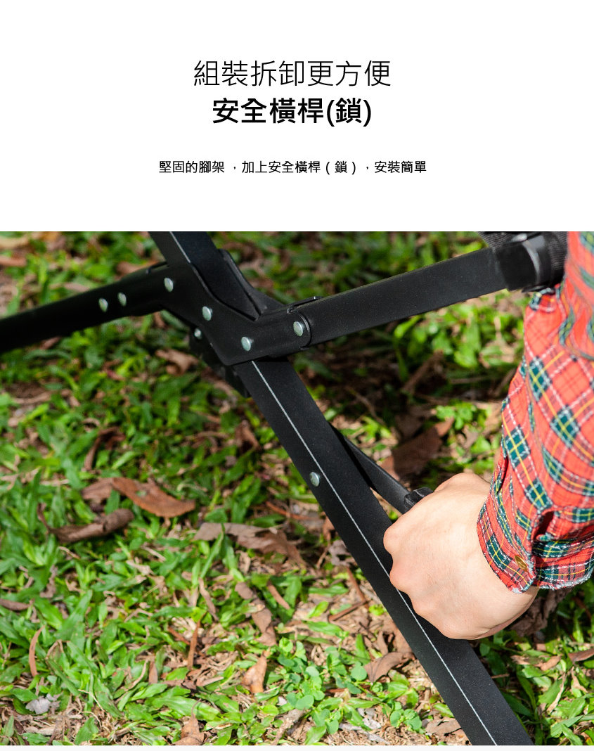 ● 堅固的腳架,加上安全橫桿(鎖),安裝簡單