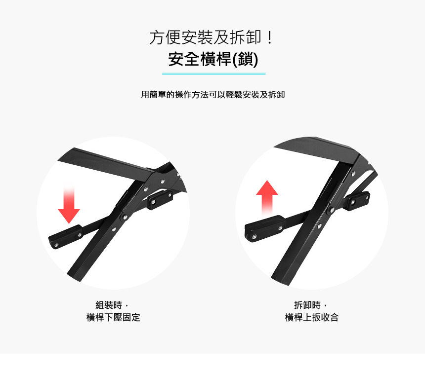 組裝拆卸更方便,安全橫桿(鎖)
