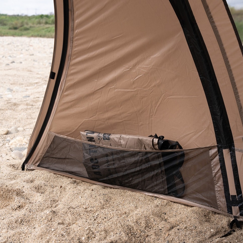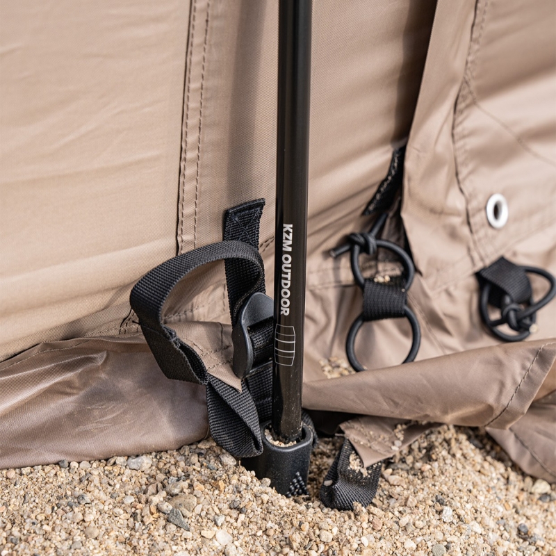 ‧簡單的營柱套設計,採用插入式營柱套設計,安裝和拆卸都很方便,並且在安裝時可確保帳篷不會離地