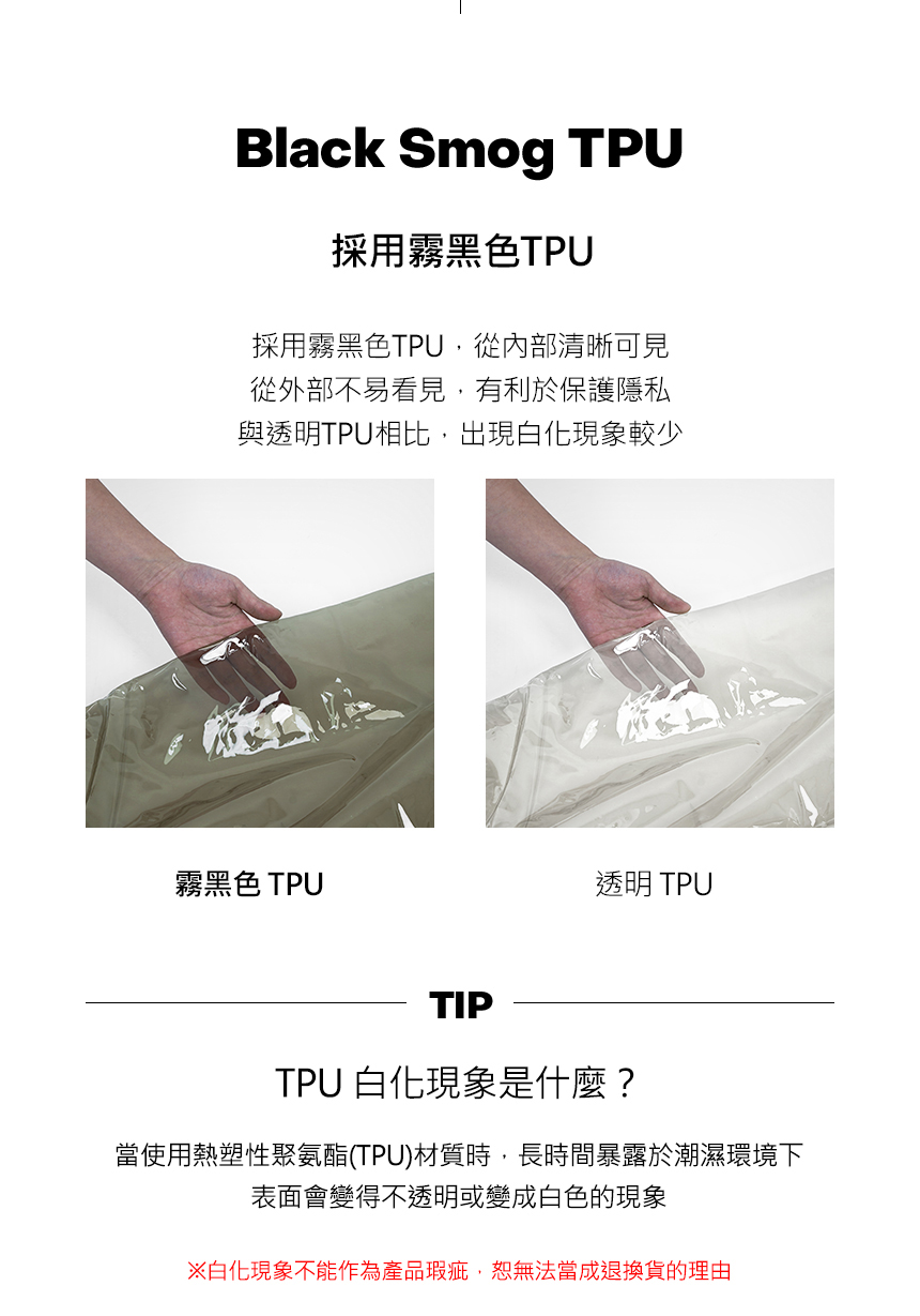 ‧採用霧黑色TPU,從內部清晰可見,出現白化現象較少