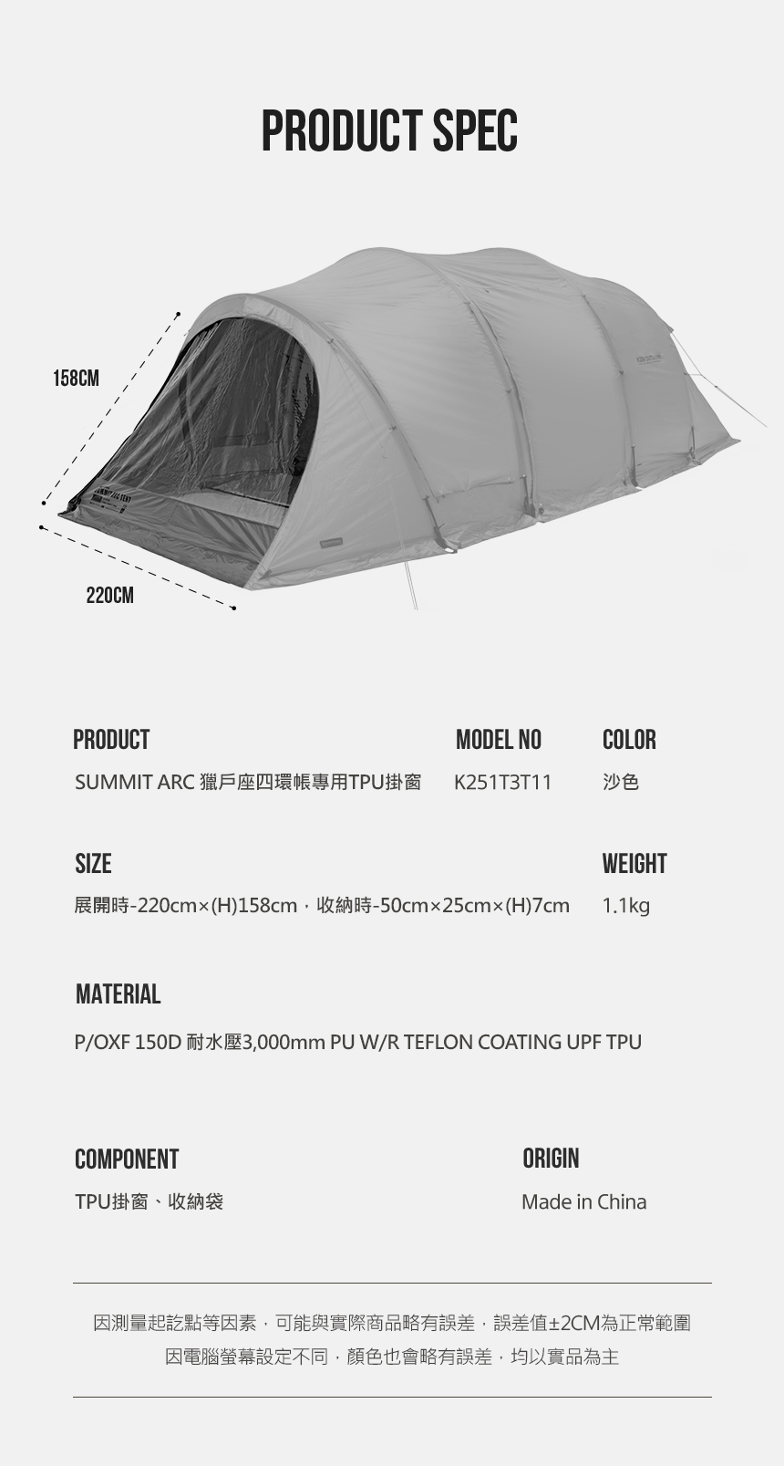 【JIALORNG 嘉隆】KZM SUMMIT ARC 獵戶座四環帳專用TPU掛窗 掛布 掛網
