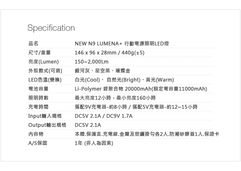 NEW N9 LUMENA+ 行動電源照明LED燈
