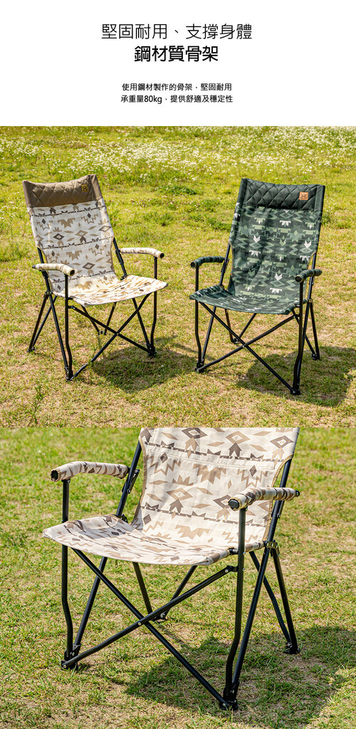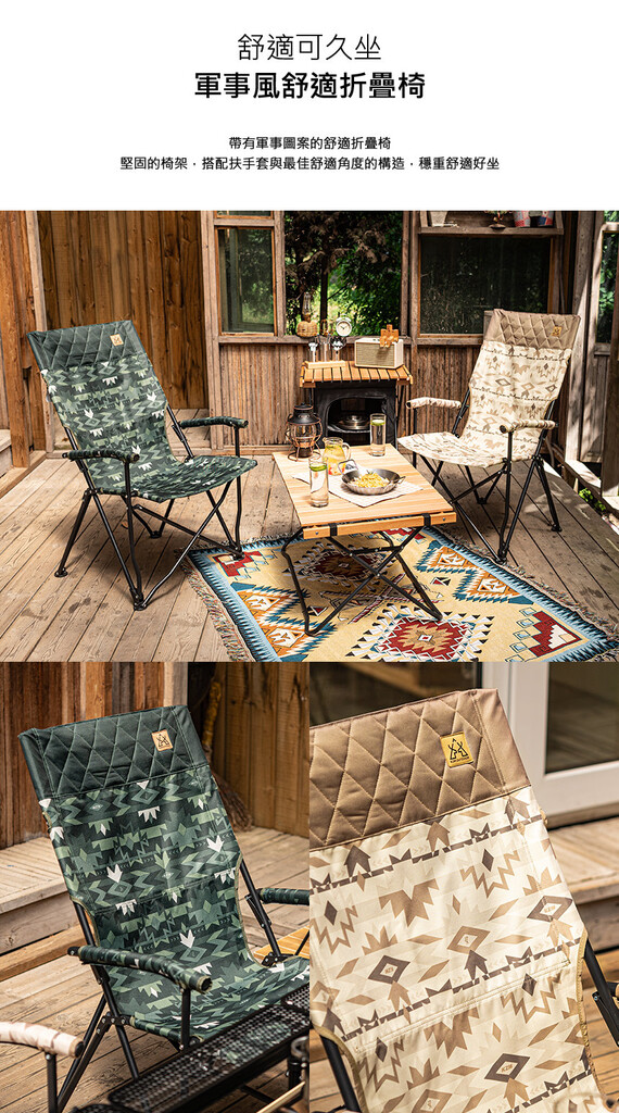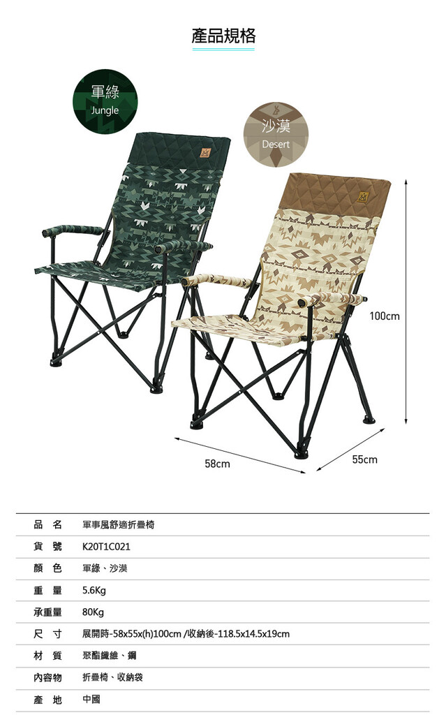 品名 : KZM 軍事風舒適折疊椅(軍綠)