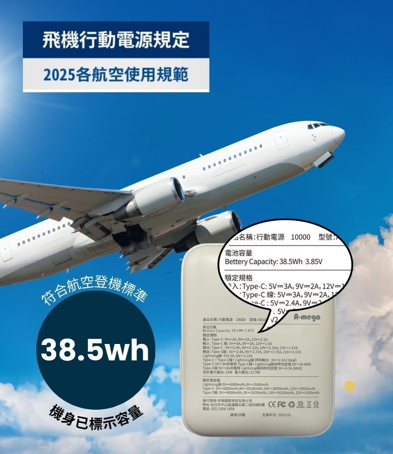 Type-C線: 5V⎓6000mAh,9V⎓35O0mAh,10V⎓3OO0mAh,12V⎓2500mAh