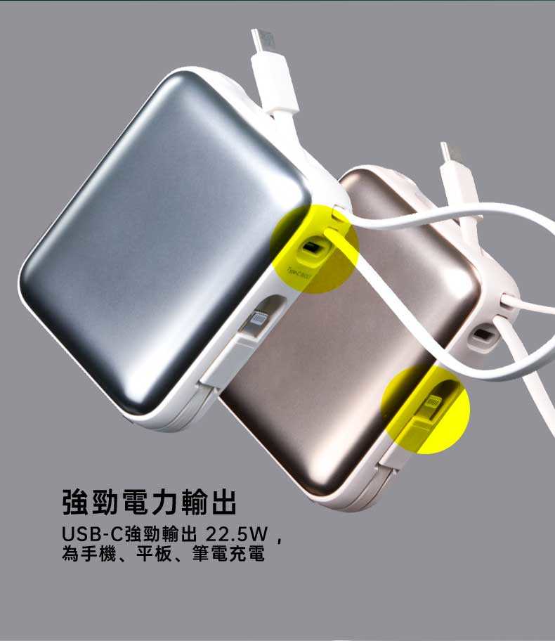 ✓ USB-C強勁輸出 22.5W ,為手機、平板、筆電充電